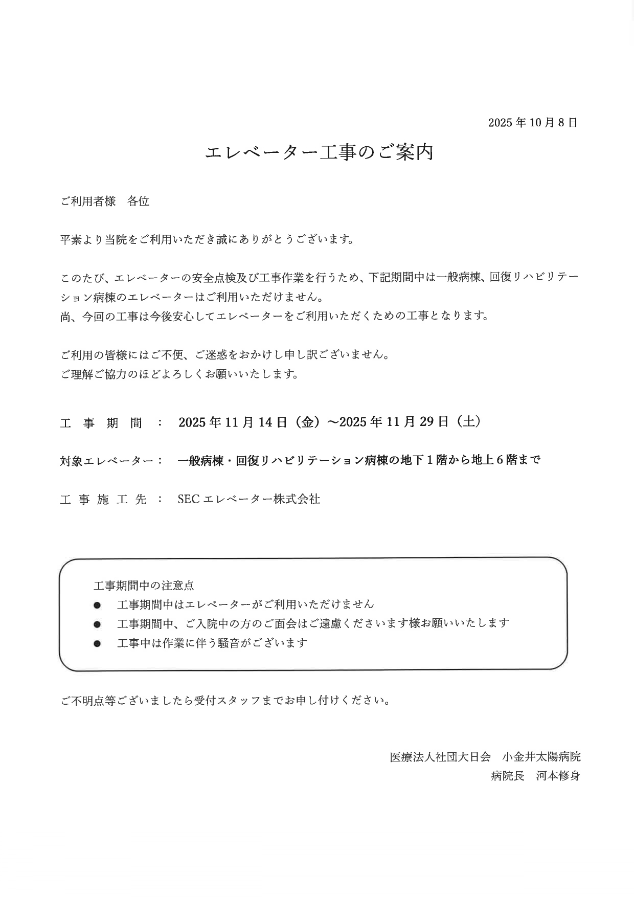 東京都 小金井市 小金井太陽病院 内科・消化器科・循環器科・外科・整形外科・リハビリテーション科